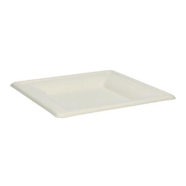 Bagasse-Teller 16 cm x 16 cm x 1,5 cm ungeteilt weiss PrimeSource BeGreen