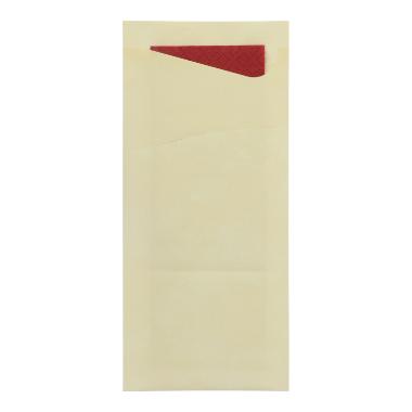 Bestecktasche Sacchetto 8,5 cm x 19 cm champagner + Serviette 2-lagig bordeaux
