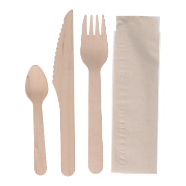 Holz-Besteckset Gabel+Messer+Teelöffel+Serviette gewachst VERIVE FSC 100%