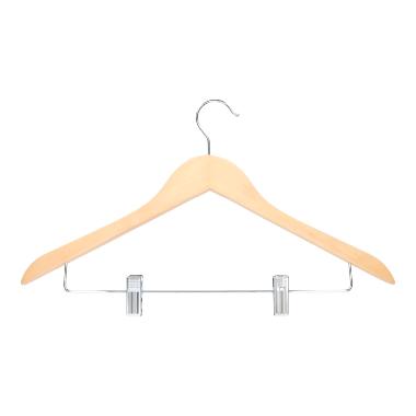 Kleiderbügel Holz mit Klammersteg hellbraun