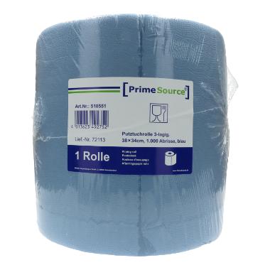 Putztuchrolle recycelt 38 cm x 34 cm x 340 m 3-lagig 1000 Blatt blau PrimeSource