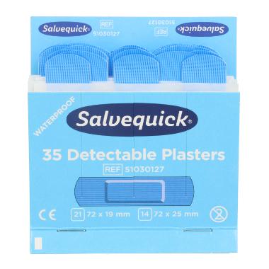 Salvequick Detectable Pflaster 72 mm x 19 mm u. 72 mm x 25 mm blau